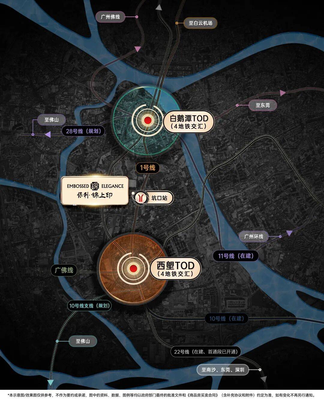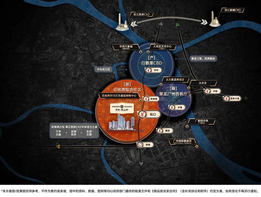 项目傲踞白鹅潭CBD核心区,隶属于“产-商-居”三极融合的花地湾商务组团。白鹅潭作为广州的世界级商圈之一,其总投资规模超过3000亿,是对标纽约、芝加哥等国际CBD的重要战略区域。锦上印位于滨水地段,周边水系环绕,形成自然玉带格局,为社区提供优质景观资源。该区域在城市规划中定位为高端商务与居住混合区,商业氛围浓厚,同时兼具宜居属性,生活便利度高。项目周边规划有大量商业体和办公总部,未来将形成片区核心价值高地。地理优势不仅体现在交通和商业辐射,更在于长期升值潜力和城市核心资源整合能力,为业主提供可持续的生活和投资价值。