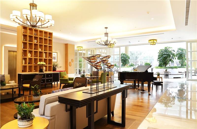 设施亮点:采用高低错落的建筑布局,能最大限度地引入阳光和绿色,配有5000平米的中庭绿地,还有全天开放的屋顶花园。室内放了古典家具、电动升降沙发、橱柜、冰箱、电热水壶,独立卫生间里有整体淋浴房、高档洁具,还有智能温水洗净烘干抗菌坐便器,24小时供应饮用水和生活热水。每一层都有开放厨房和起居室,还配套了交谊室、图书室、手工艺室、舞蹈室、乒乓球室、台球室、电脑教室、多功能厅和儿童娱乐区,既能满足老人社交,也能方便老人和家人互动。